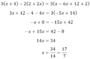4(3x−4)+6(2−3x)=3(1−x)4(3x−4)+6(2−3x)=3(1−x)